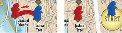 The red Trekker moves to Joshua Tree, bumping the blue Trekker back to the START location.