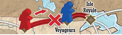 The red Trekker cannot get to Isle Royale using this route because he is blocked by the blue Trekker.