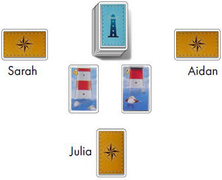 The player who played the highest number Weather card (Julia) must take the lower Tide Level card from the two face up next to the deck. She then lays it face up in her playing area so that all of the other players can see it.