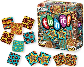 Twin It! is a game of fast visual reflexes. The aim is to spot and collect 2 identical pattern cards. Before playing, choose which of 3 modes you want to play: Competitive, Team, or Cooperative.
