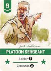 The Platoon Sergeant is your second in command, assisting in controlling the direction and rate of advance of the platoon. It is also the most powerful card in the game. The Platoon Sergeant lets you play more cards in your turn or vastly bolster your deck.