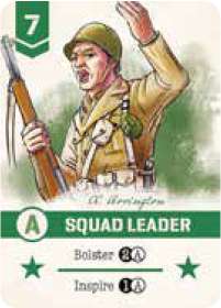 The Squad Leader is responsible for the discipline, training, and control of his squad, and leads it in combat. This card amplifies the effectiveness of its squad by allowing you to bolster it or repeat already played cards.