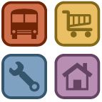 There are four zones in this game, each represented by a color-coded icon: red "CIV"ic, gold "COM"mercial, blue "IND"ustrial, or purple "RES"idential. There also exist park [green] buildings: Parks are "neutral" buildings and thus do not belong to any zone.
