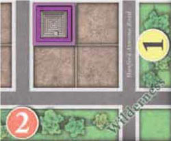 Example: At the start of the game, the value of the RES build- ing situated nearest the word "Wilderness" is 2 + 1 = 3.