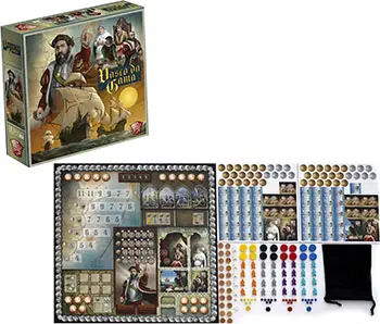 Shuffle Vasco da Gama's Tiles (from now on, VdG's Tiles) and place the deck face down in the space on the right. Pick the first Tile and place it face up on the top of the deck.