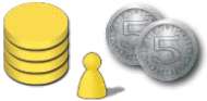 At any time, during the game, he will be able to exchange 5x 1 Real coins of his supply with 1x 5 Reals coin of the common supply and vice-versa.