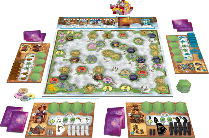 The nebula valley has just emerged from a dark era, when for centuries, monstrous creatures inhabited the mists. It is now time for guilds of brave explorers to travel through the foggy pathways, exploit the resources and build new buildings and towns on the ruins of the devastated cities. Nebula will retrieve its peace and prosperity, and you are to become the heroes of the valley!