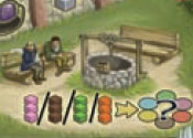 If you want to pay for a good with time, you first need to train a family member in the appropriate craft building. Place a family member from your farmyard onto the craft building that you want to use. This costs you a certain amount of time (the number of hourglass symbols next to the image of the gray family member on the building's roof).