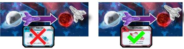 Ships may not move to a planet with another player's ships, except when Attacking (using Skirmish/Advance/Concentrate).
