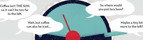 In this example, the target is slightly to the "hot" side, so the Psychic says "Coffee" since coffee is hot, but not the hottest thing imaginable.