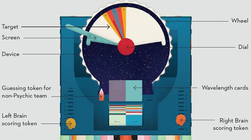 One player from the active team-the Psychic-knows where the target is, but can only give a clue ON THE SPECTRUM between two opposing concepts. After that, their team- mates have to guess where the target is.