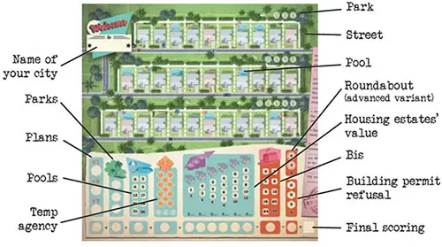 In Welcome To, players are American architects in the 50s during the Baby Boom. But beware of the competition! Who will best accomplish the city's plans by creating the nicest housing estates in the three streets they've been assigned? Will your luxurious parks and fancy pools be enough to earn you title of Best Architect?