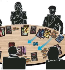 When you are done, cards and/ or tokens change hands and are placed in front of their respective owners. The player to your left becomes the new Active Player and begins a new turn.