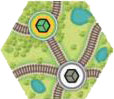 8 Randomly choose 9 ordinary train route tiles and place them randomly faceup into the rightmost column and in the topmost and bottommost positions of the second column. Tiles cannot be placed in an orientation that results in the only continuing route going backward.