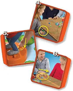 Each player chooses one whoopee cushion controller and the nose and playing piece stand that match the color of their whoopee cushion controller.