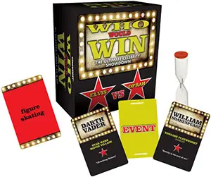 Be the first player to collect five Event cards by winning debates about which famous person would win a randomly chosen event.