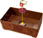 Insert the ring base into the circular compartment of the chest with the ring on top. Close the lid and switch on the chest.