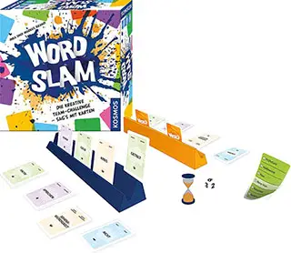 Now give the command to start: The blue team's storyteller calls out "WORD" and the orange team's storyteller responds with "SLAM". Let the guessing begin!