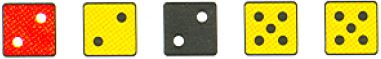 Keep in mind that the dice are in four "suits"(colors), so you can get a "flush" hand with 5 dice of the same color. Betting is always done in clockwise order, beginning with the player to the left of the Dealer.