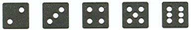 Sequence of five dice in different suits (1 through 5 or 2 through 6).