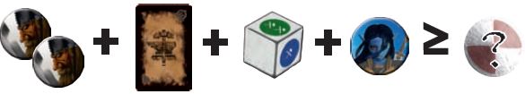 For instance, Odin is fighting Surt who has a combat force of 6. Odin gets rid of 2 Vikings and rolls the die (result 2). So his force is 2+2=4. He adds his Artifact bonus +1 and gets rid of 1 Elf. His force is now 4+1+1=6. His force equals Suns combat force, so Odin wins the combat.